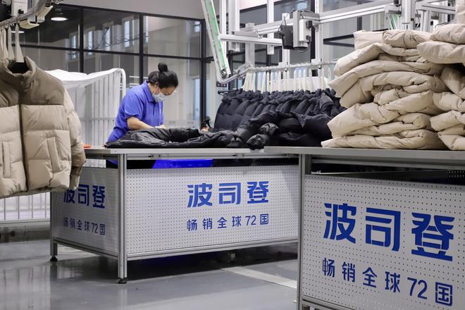工人在波司登(哈尔滨)智能制造有限公司生产羽绒服。新华社记者 徐凯鑫 摄