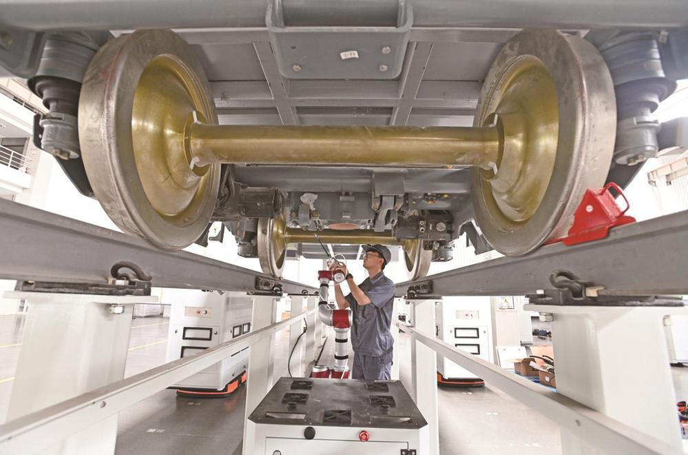 走进生产车间,在自主研发、全国首创的智能飞行列检工作站的机厢内,一台无人机引起记者注意。“您看到的这台无人机并不是普通的航拍无人机,而是一台会飞的智能列检机器人。”赵辉语气中带着自豪。工作人员熟练地在操作面板上输入程序指令,智能列检机器人开始起飞,进行巡检任务。“它有非常敏锐的‘眼睛’,因为搭载了视觉传感器,可以对车顶、车底、车内、车侧等位置进行360度扫描。像车辆部件变形、紧固件松动、异物入侵等车体异常情况可以精准识别,体检报告实时生成,列车健康状况一目了然。原来4个人爬车顶、钻车底、耗时四五十分钟才能完成的巡检任务,现在一台机器人20分钟就能轻松搞定,大大提高了列车巡检效率,真正以智能科技赋能轨道交通的车辆安全。”赵辉详细介绍。
